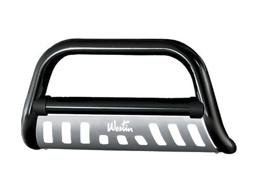 Westin 33-1435 Ultimate Black Powdercoated Stainless Steel Grille Guard?This Westin Ultimate Bull Bar grille guard adds extra front end protection, maximum ground clearance and the perfect finishing touch for your vehicle. The bull bar is manufactured from 3" diameter stainless steel tubing for durability and customized for eye appeal. The crossbar has black molded end caps and Westin's logo is laser-cut into the stainless steel skid plate. This assembly includes skid plate and mounting kit.